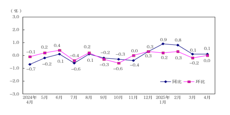 5月12日,国家统计局深圳调查队发布数据显示,2025年4月份,深圳工业生产者出厂价格指数(PPI)同比上涨0.1%,环比持平;工业生产者购进价格同比上涨0.3%,环比上涨0.1%。1—4月平均,工业生产者出厂价格同比上涨0.5%,购进价格同比上涨0.5%。